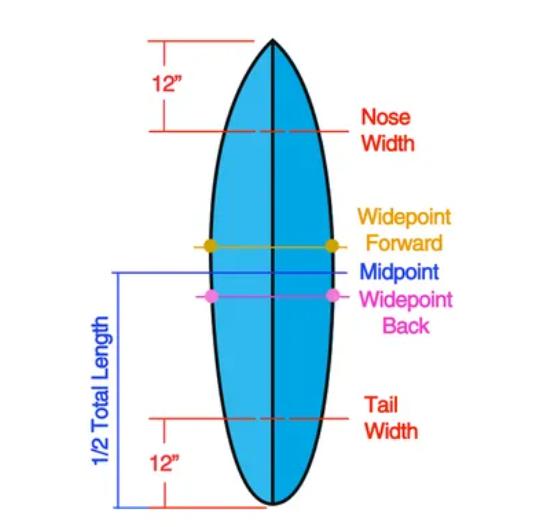 性能短板的宽点经常出现在板长的中点后面,而在许多复古板、长板和枪板的宽点则在中点之前。将宽点向后移会缩短冲浪板的转弯半径,但会影响驱动力。而宽点前移会使转弯半径更大,但保持了更多的驱动力。将宽点置于板长的中点通常被认为是“中性的”。这种设计在驱动力和响应能力之间取得折衷。
