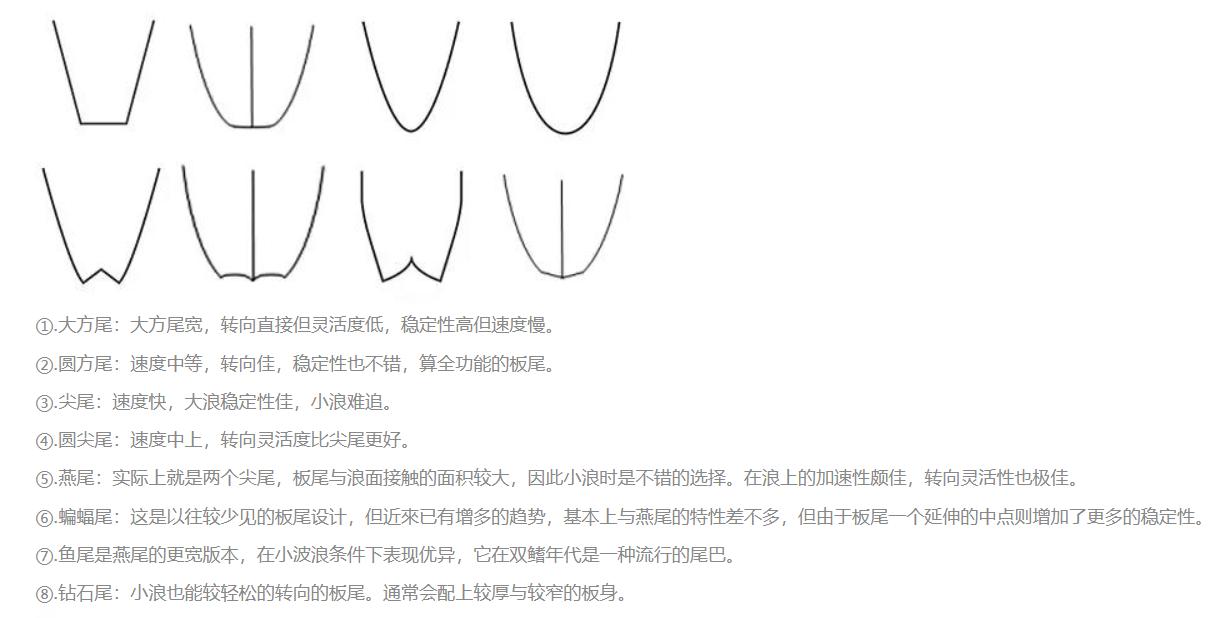 目前为止最为流行的板尾是圆方尾,它提供了很多人理想中的升力和释放之间的平衡 ——其形状使得转向剧烈但流畅。